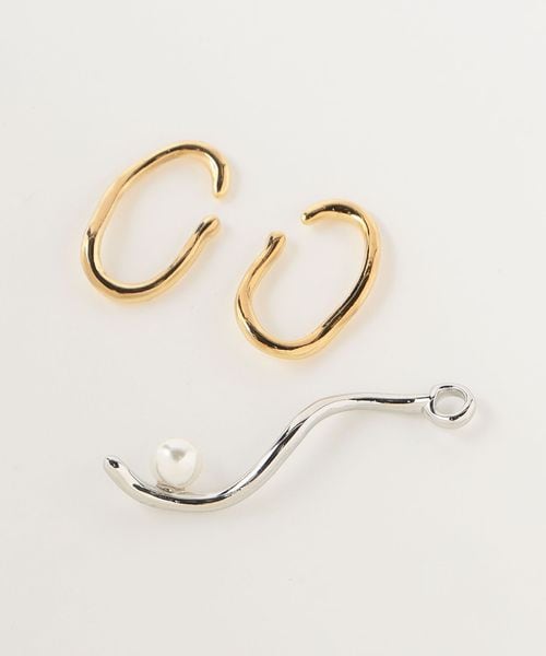 ゴールドカラーのパーツは2つあり、シンプルなイヤカフ(両耳)としても使用いただけます。