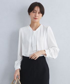 ボウタイ×チャームが華やかな雰囲気のブラウス。