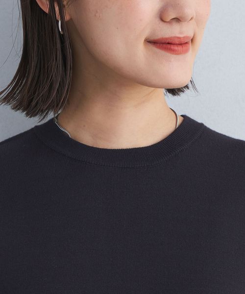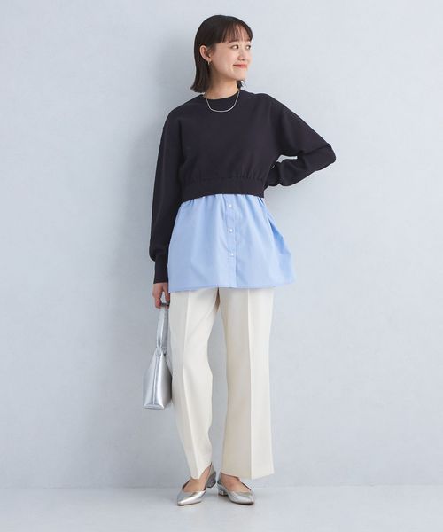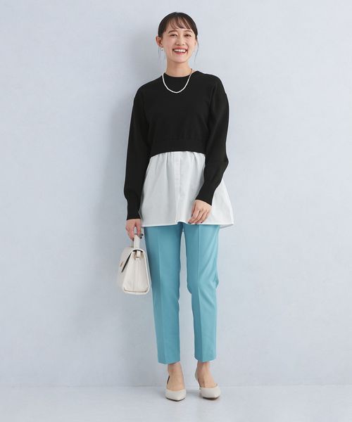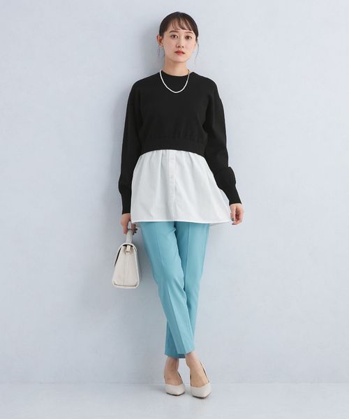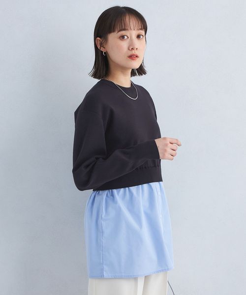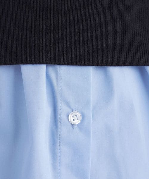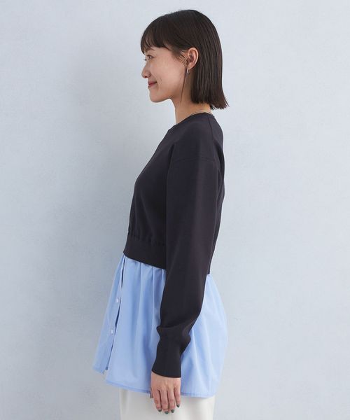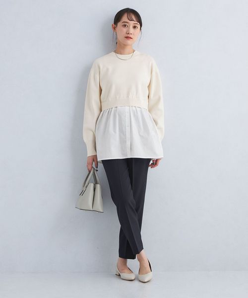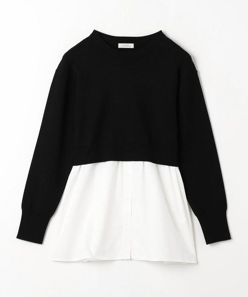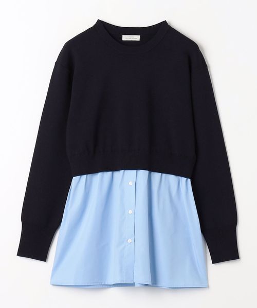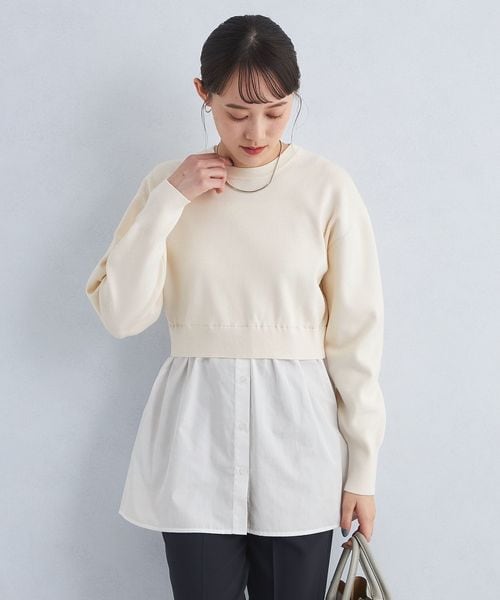 程よい肉感のあるニットに、裾部分にはさらりとしたタッチのシャツをドッキングしたデザイン。