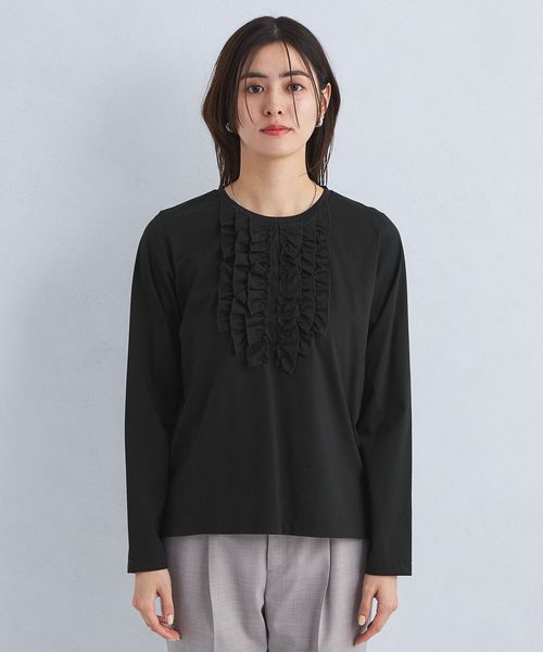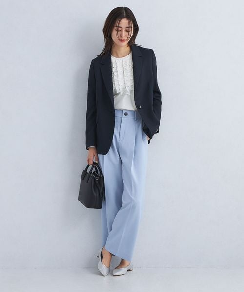 一枚での着用はもちろん、ジャケットを羽織った着こなしもフリルがアクセントになります。