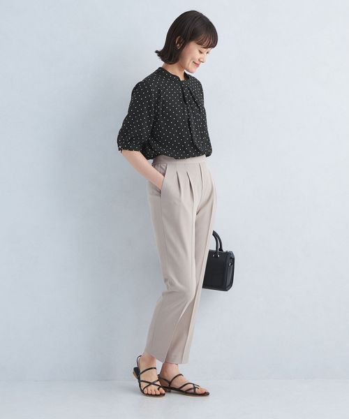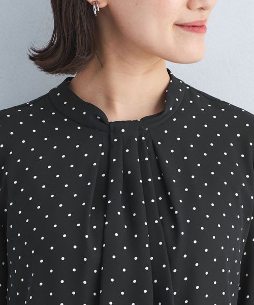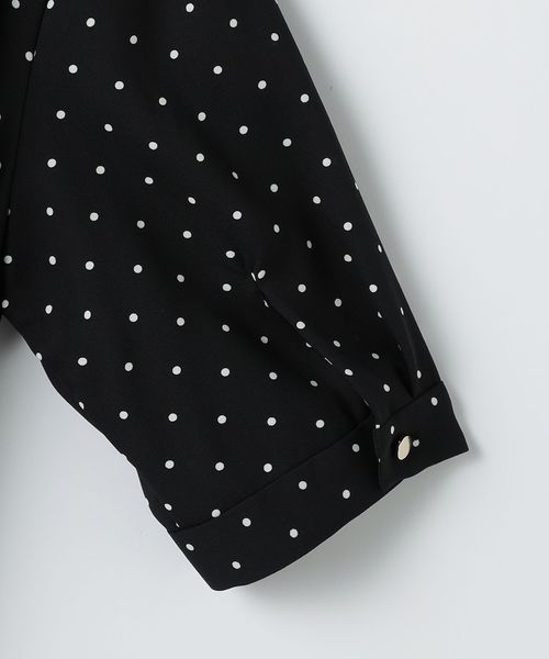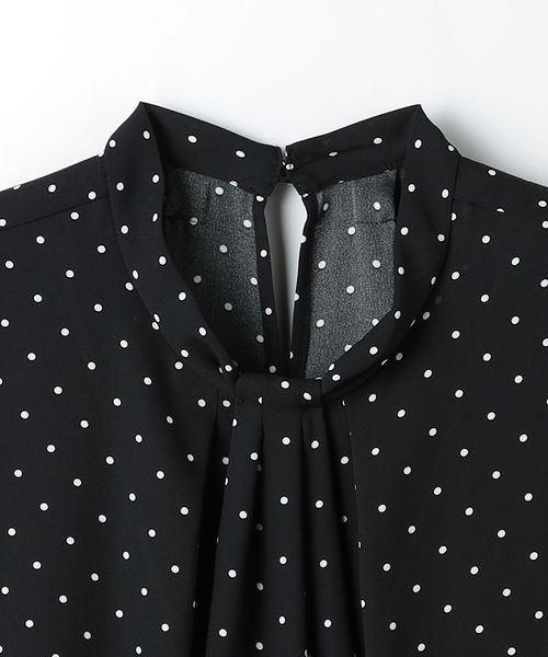 スカーフタイ ショートスリーブ ドット ブラウス ―マシンウォッシャブル―