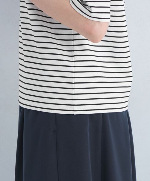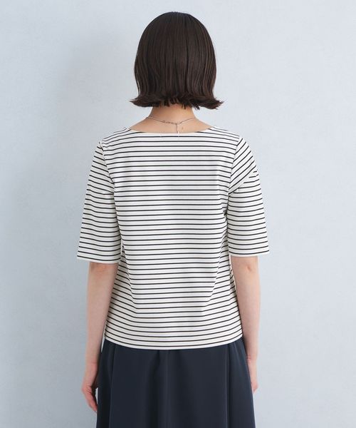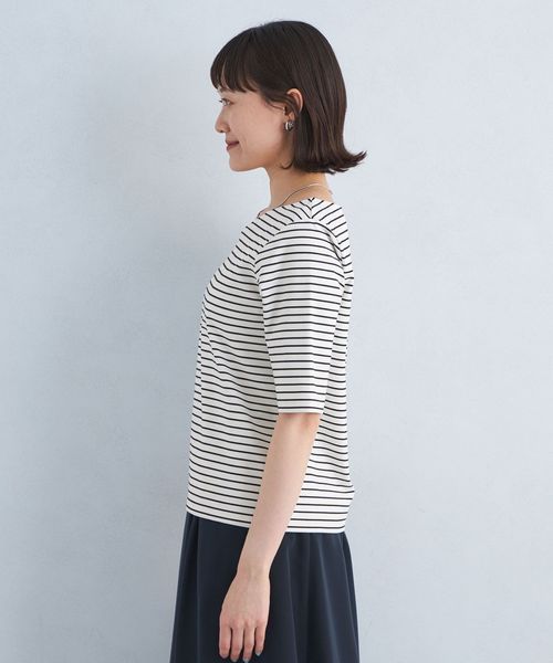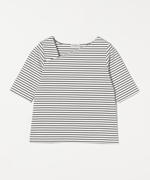 アシンメトリーネック ポンチ 5分袖 プルオーバー カットソー