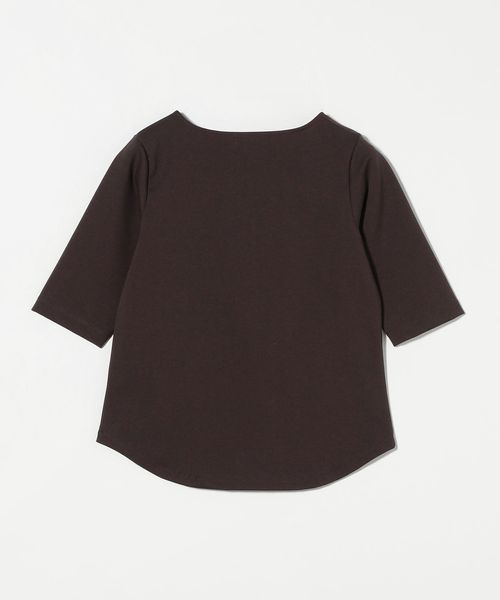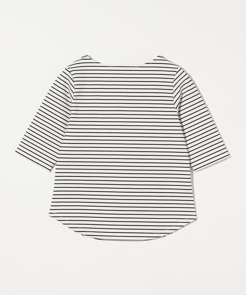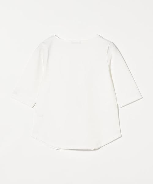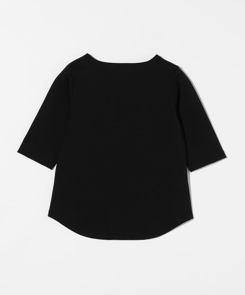 デコルテラインをキレイに見せてくれる浅めのボートネックデザイン。