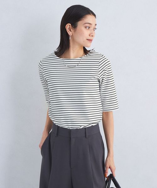 ボートネック ポンチ 5分袖 プルオーバー カットソー