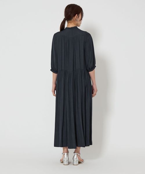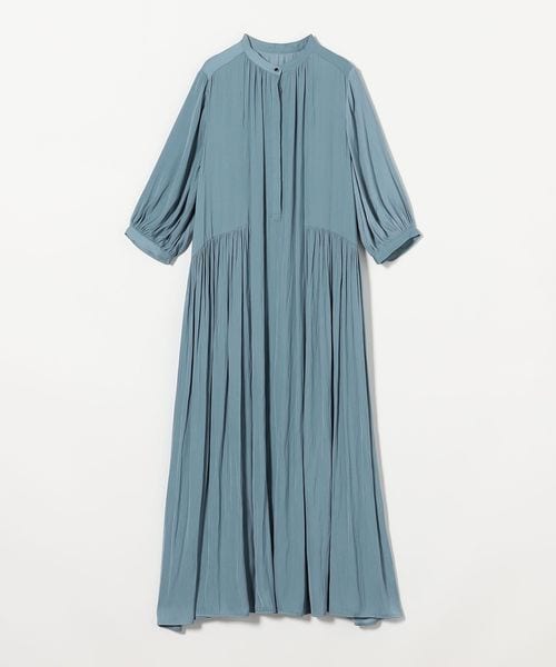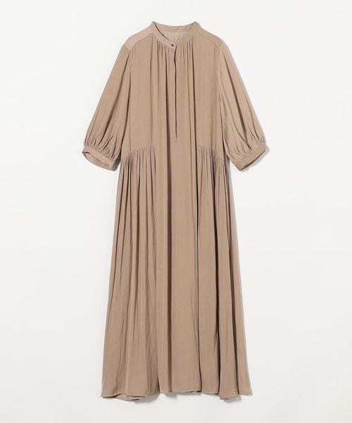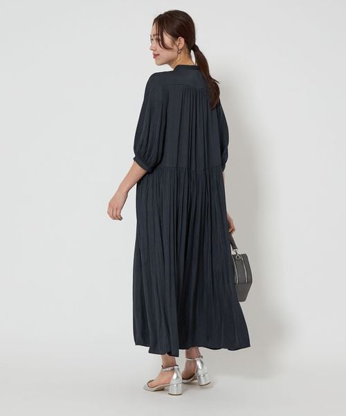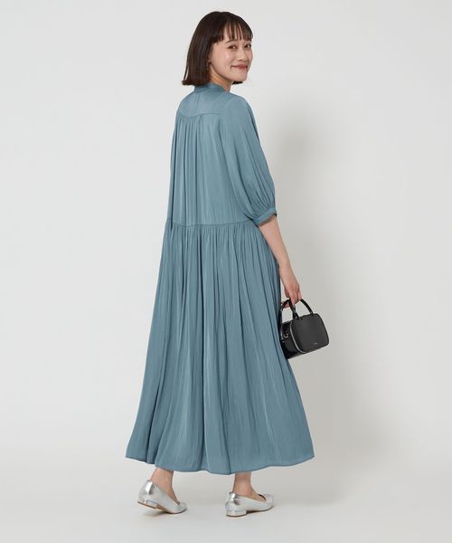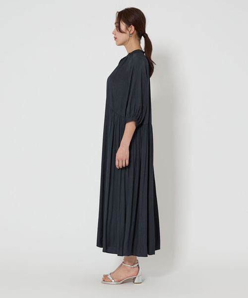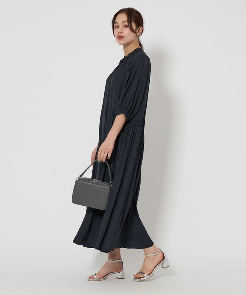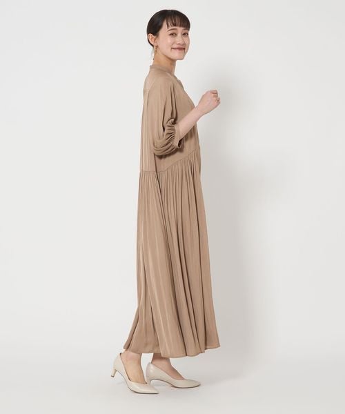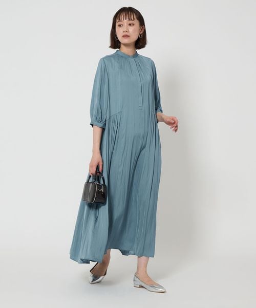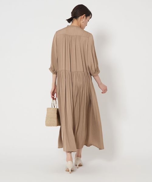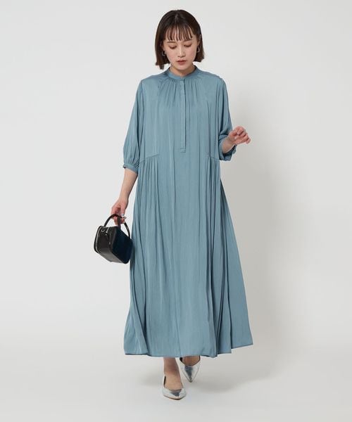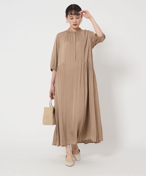 ノーカラーのデザインがすっきりと大人な雰囲気のワンピース。