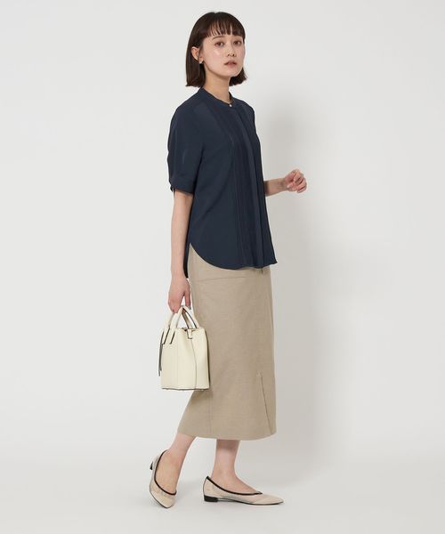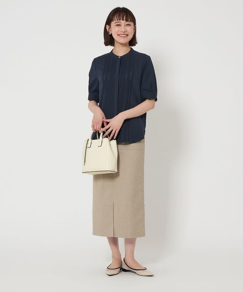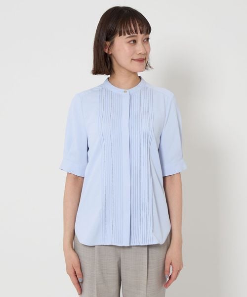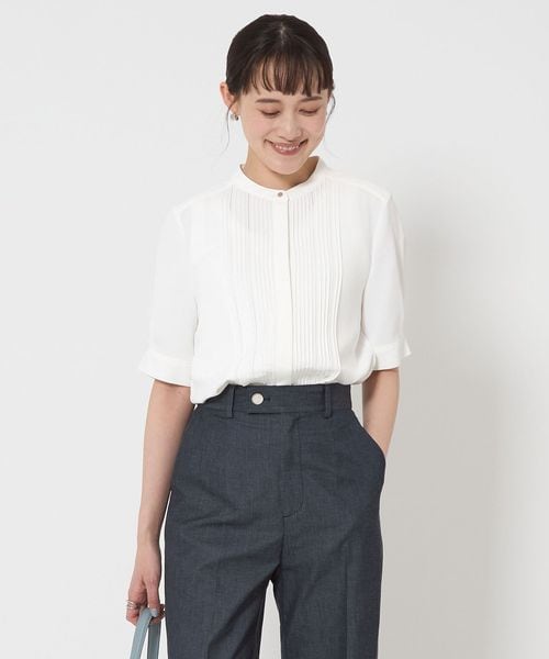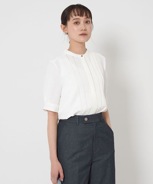 フロントに施されたピンタックデザインがポイントのブラウス。