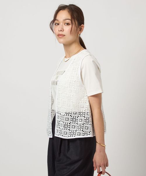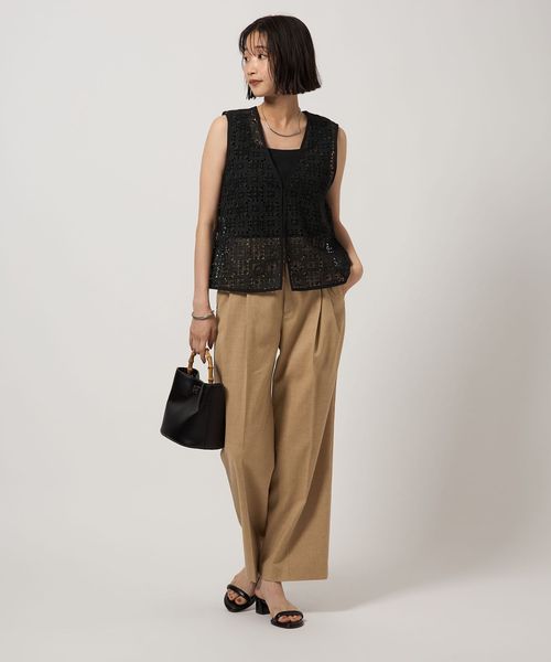 ニットやカットソーとレイヤードをすれば、こなれ感のある着こなしを演出します。