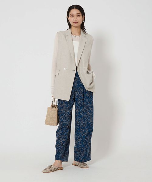 同素材のパンツやワンピースと合わせたセットアップでの着用もおすすめです。