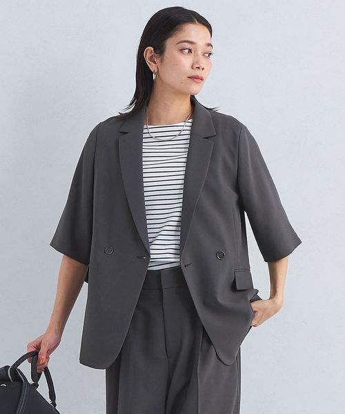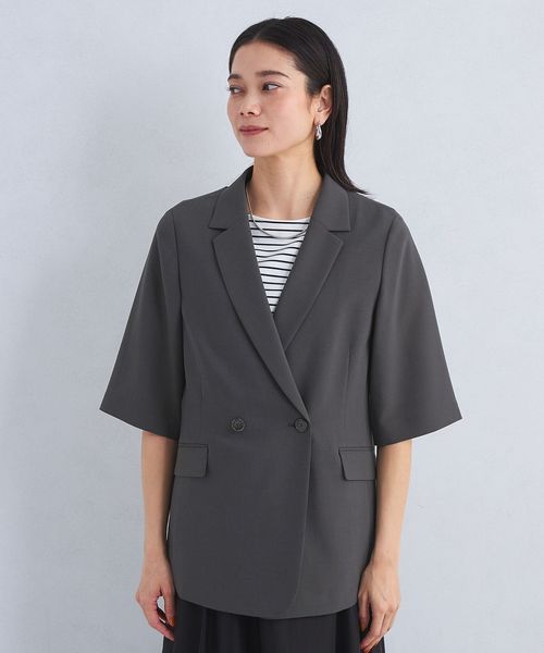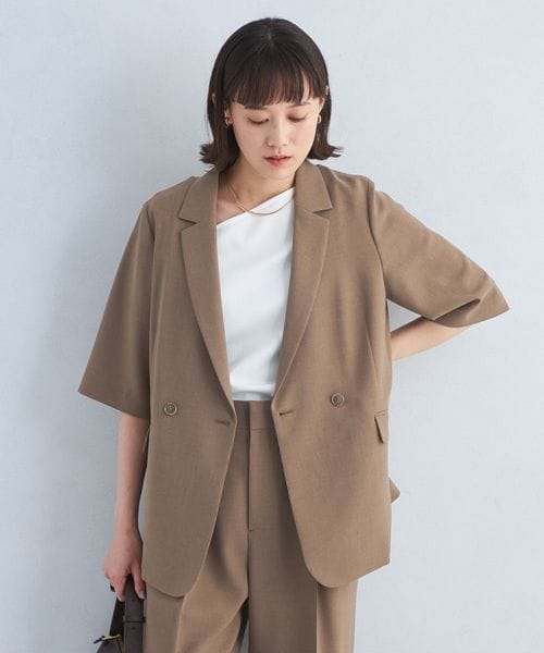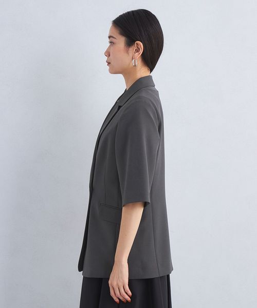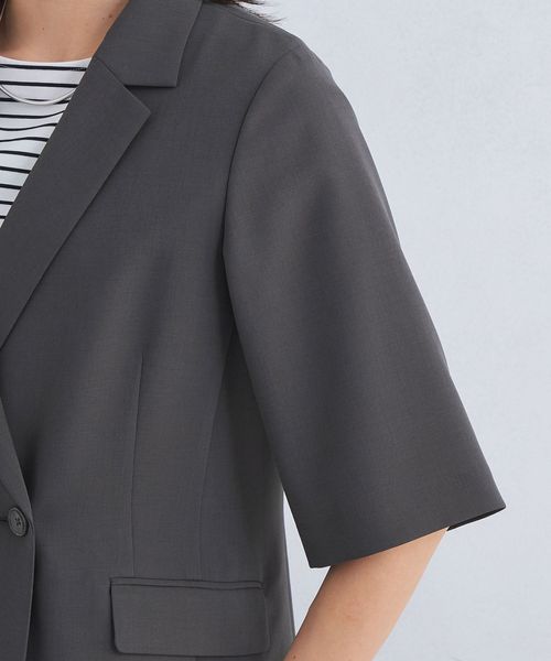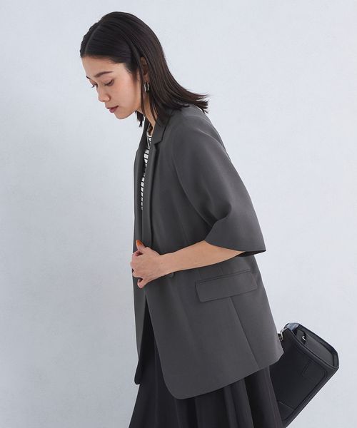 暑い時期にも、さらっと涼し気に着用いただけるショートスリーブジャケット。