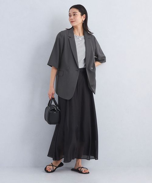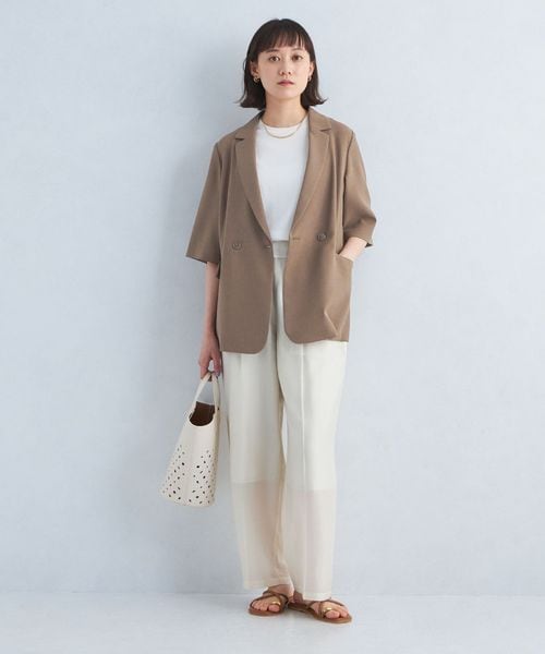 同素材のパンツと合わせたセットアップでの着用がおすすめです。