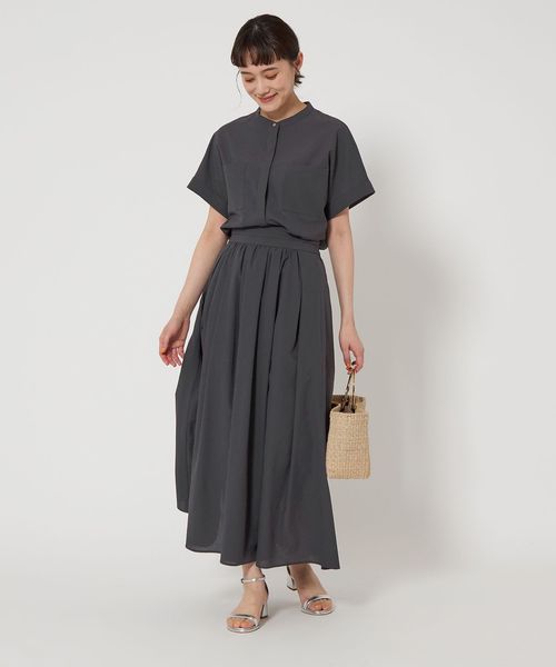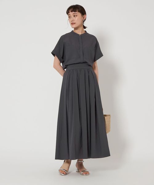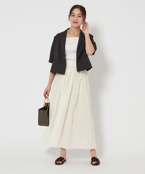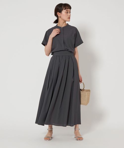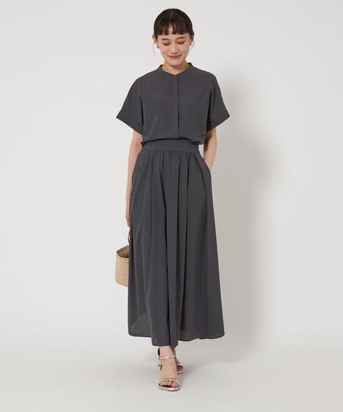 同シリーズのブラウスを合わせたワンピース風の着こなしが一押しです。