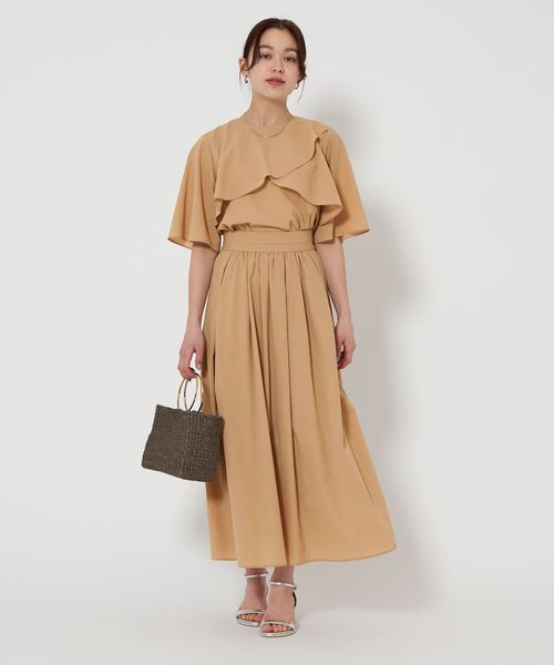 歩く度にふんわり揺れる裾がフェミニンな雰囲気を演出。