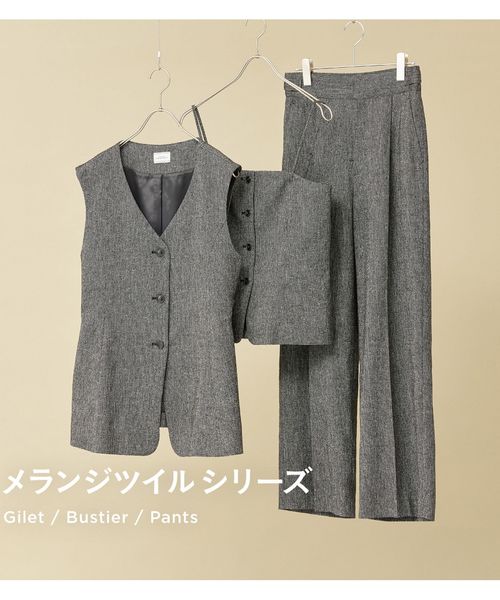 同シリーズのビスチェやジレと合わせたセットアップでの着用が一押しです。