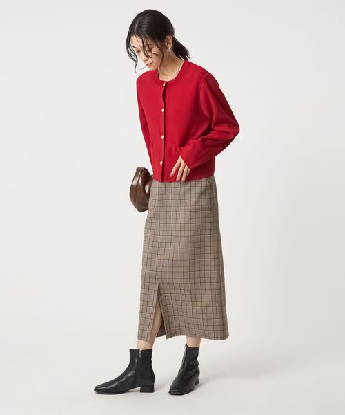 ニットのアンサンブルを合わせた大人フェミニンな着こなしや、ジレやジャケットを合わせたクールな着こなしがおすすめです。