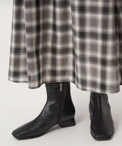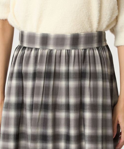 たっぷりと入ったギャザーがポイントのフレアスカート。