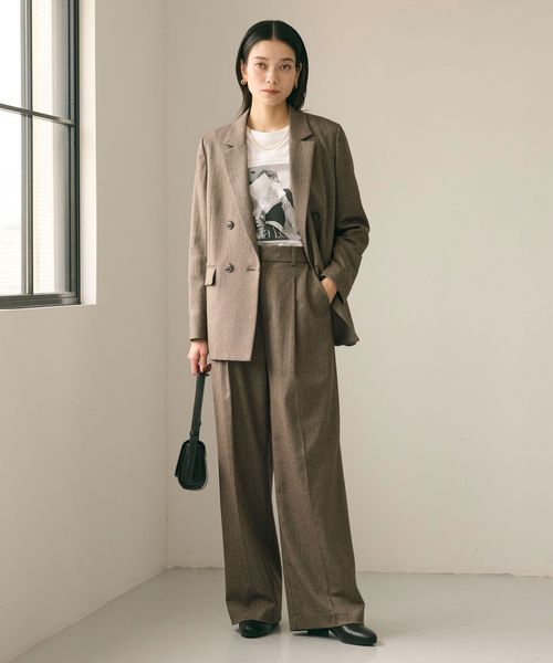 同素材のボトムとのセットアップでの着用もおすすめです。