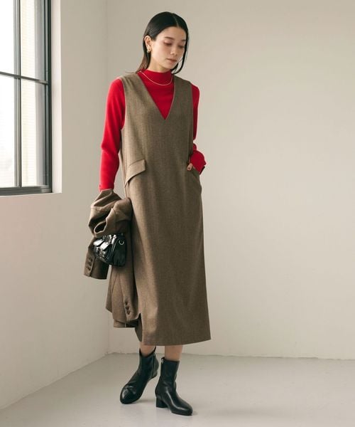 大人の上品さを感じさせるデザインで、オンオフ問わずに重宝するジャンスカです。