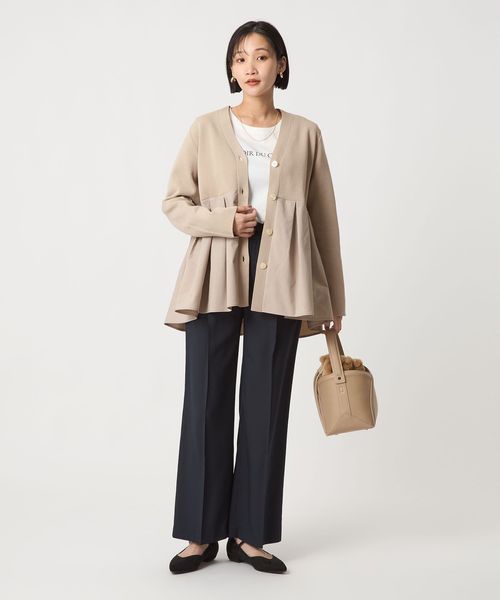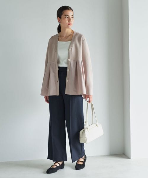 ふんわりとしたぺプラムシルエットが魅力のニットカーディガン。