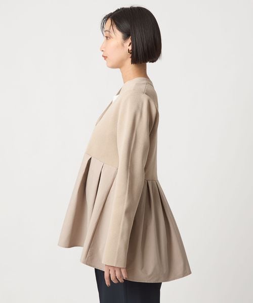 上部はニット素材、裾部分にはタフタ素材をドッキングしたデザイン。