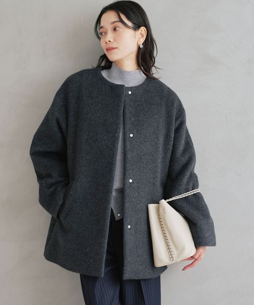 オンオフで活躍!着回しノーカラーミドルコートが登場