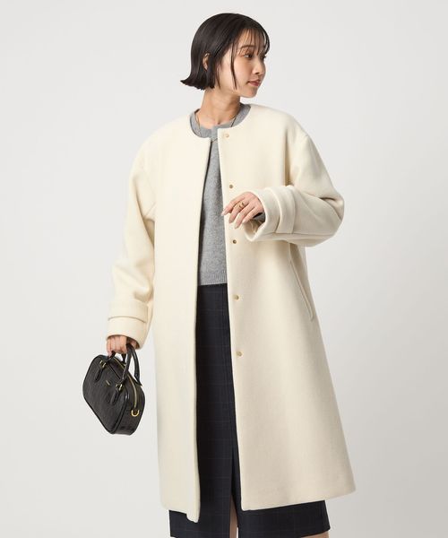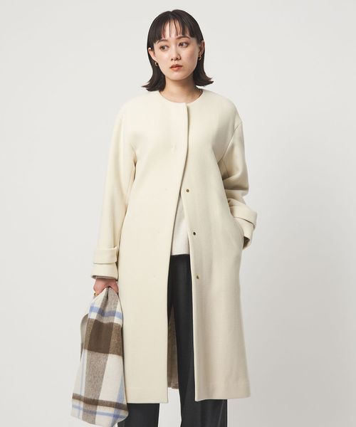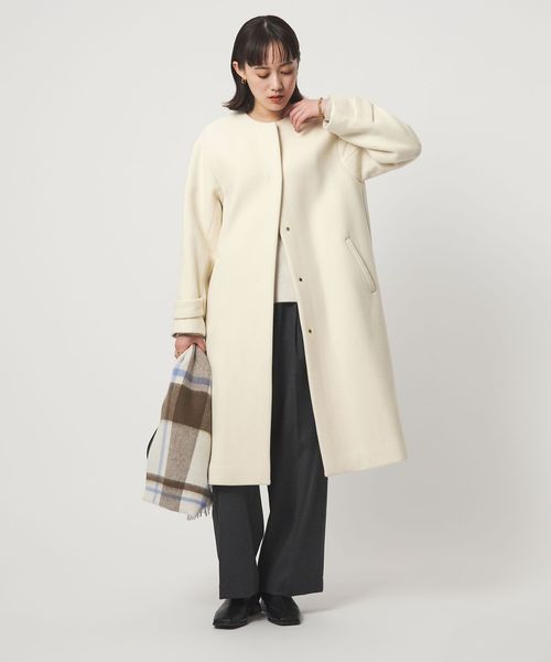 かっちりしすぎず、ほどよいきちんと感を叶えてくれるオンオフ兼用のノーカラーコート。