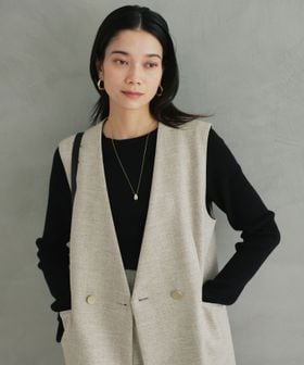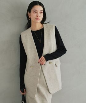 ノーラペルのデザインですっきりと着用いただけるジレ。
