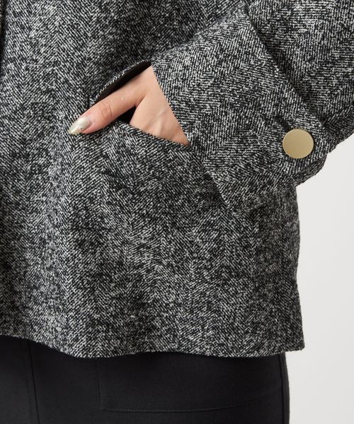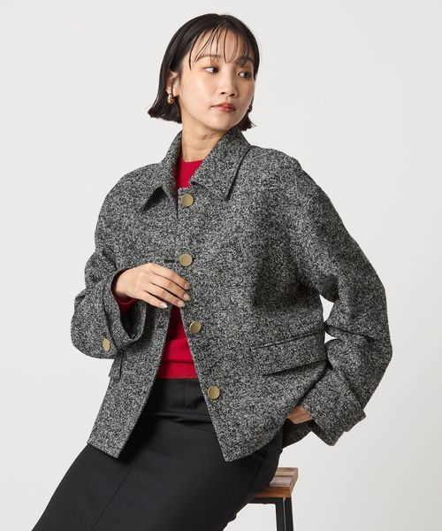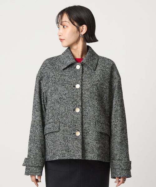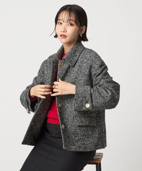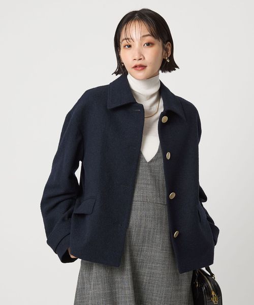 少し短め丈で襟付きデザイン、きらっと光るボタンがポイント◎