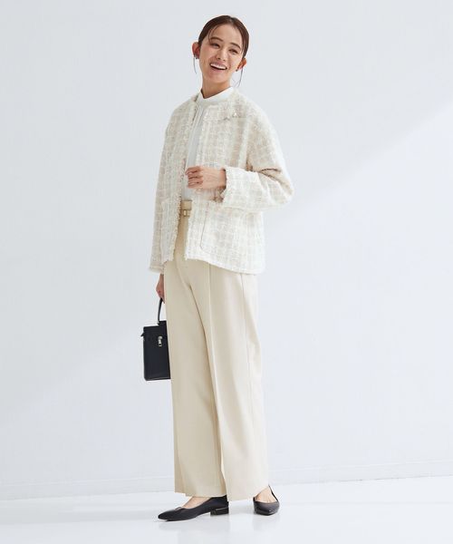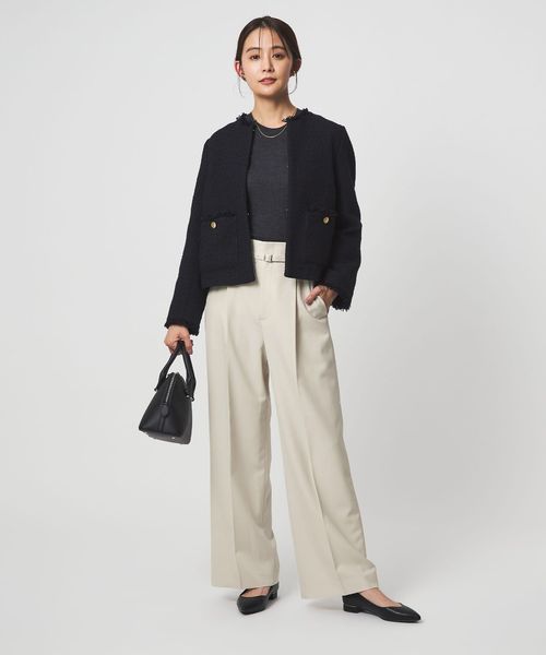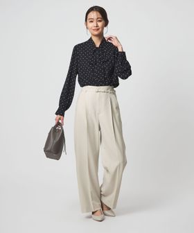 同素材のブラウスやジャケットと合わせて、セットアップとして着用いただくのがおすすめです。