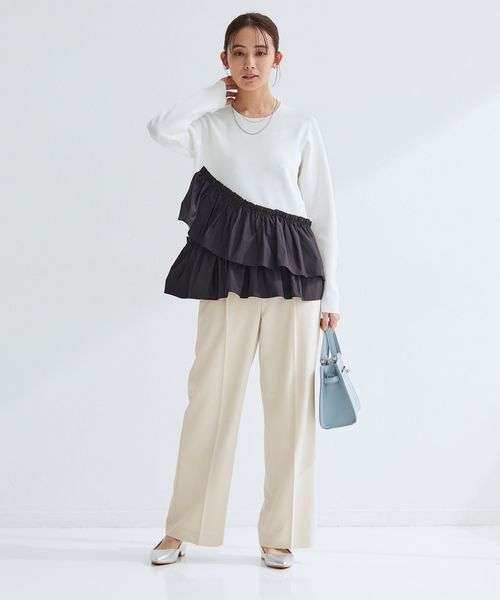 さらっとシンプルなカットソーやコンパクトニットをインした着こなしも◎