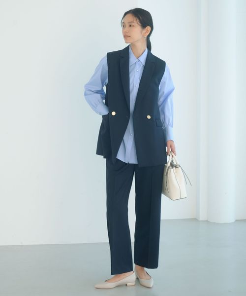 インナーにシャツ合わせていただくと、マニッシュな印象のスタイリングが叶います。