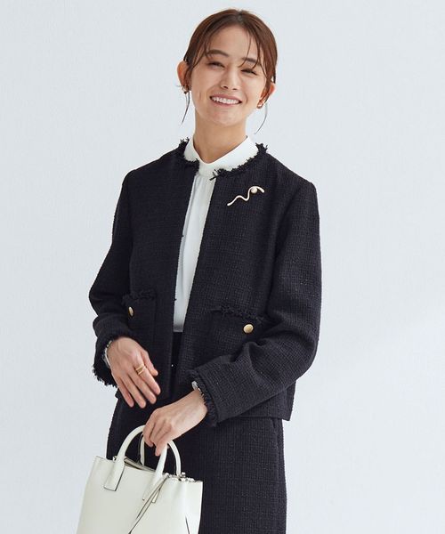 華やかな着こなしを演出するツイードライクジャケット