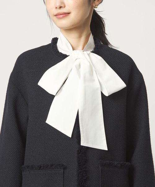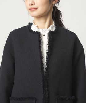 華やかなツイードライクな素材×フリンジが目を惹くジャケット