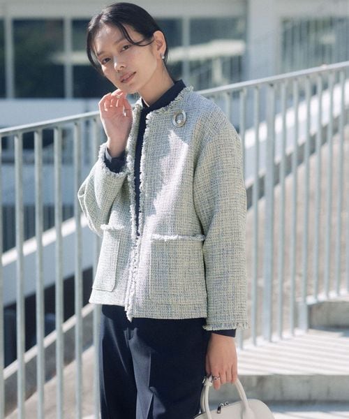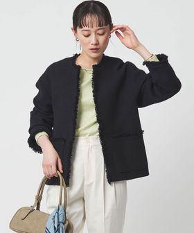 華やかなツイードライクな素材×フリンジが目を惹くジャケット