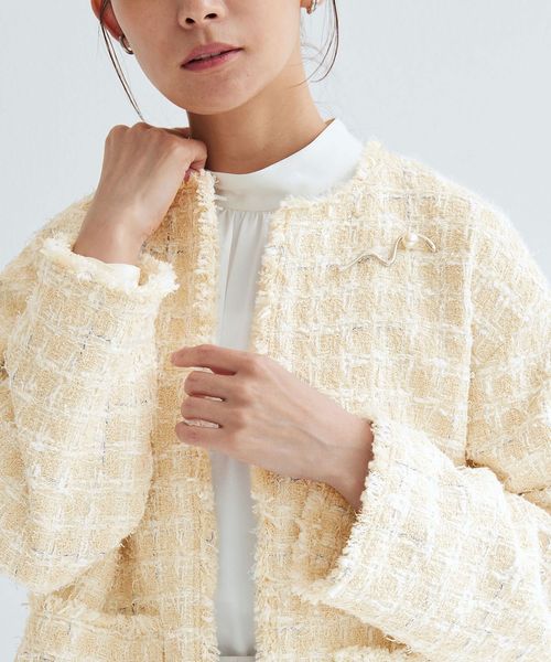 華やかなツイードライクな素材×フリンジが目を惹くジャケット