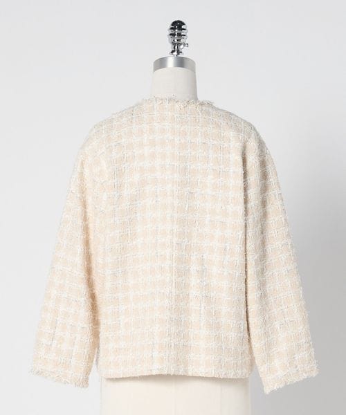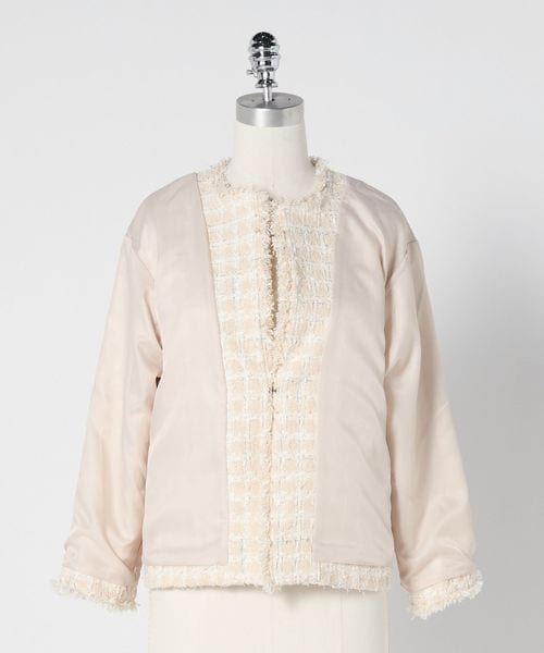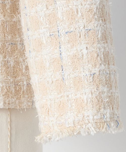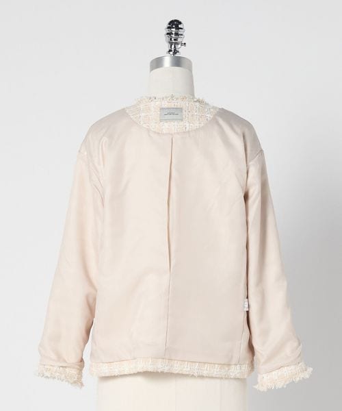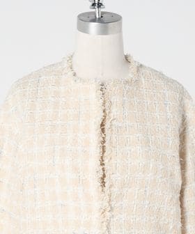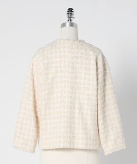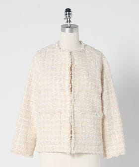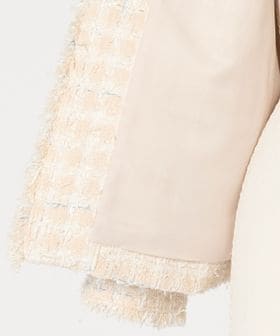 華やかなツイードライクな素材×フリンジが目を惹くジャケット