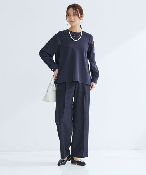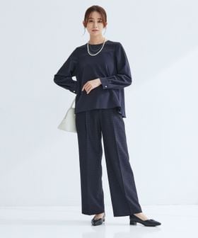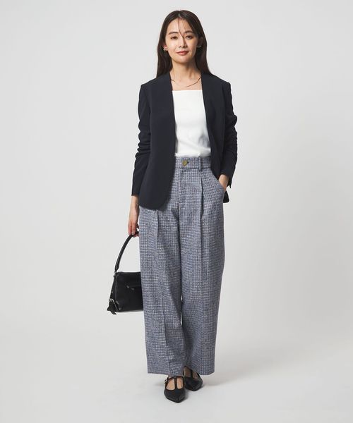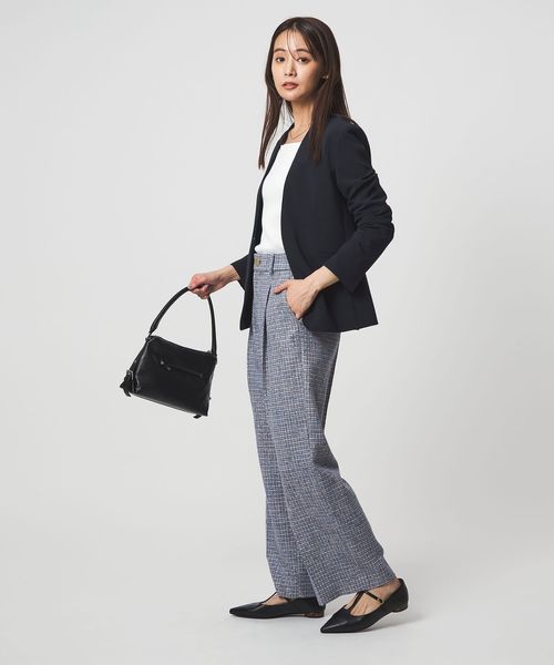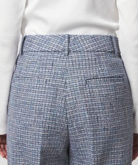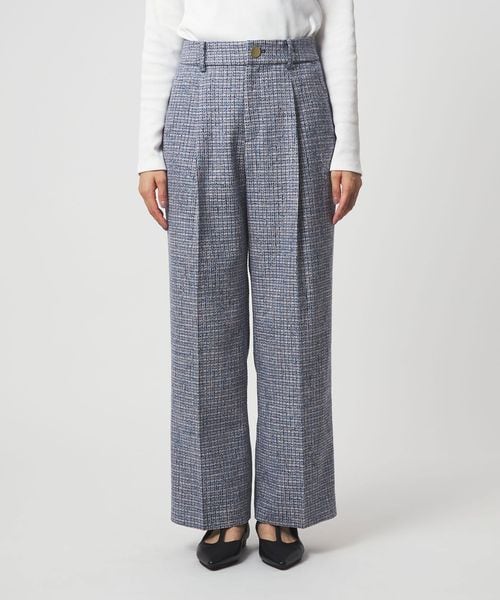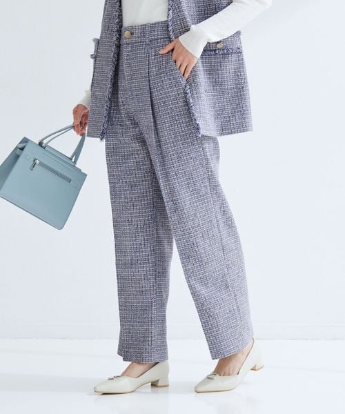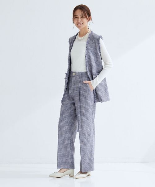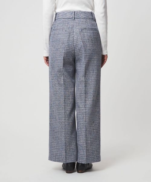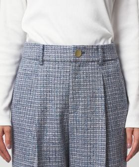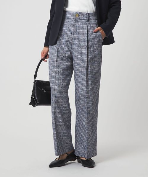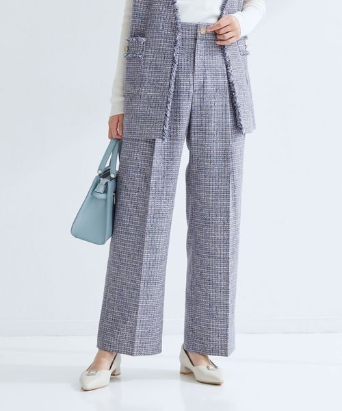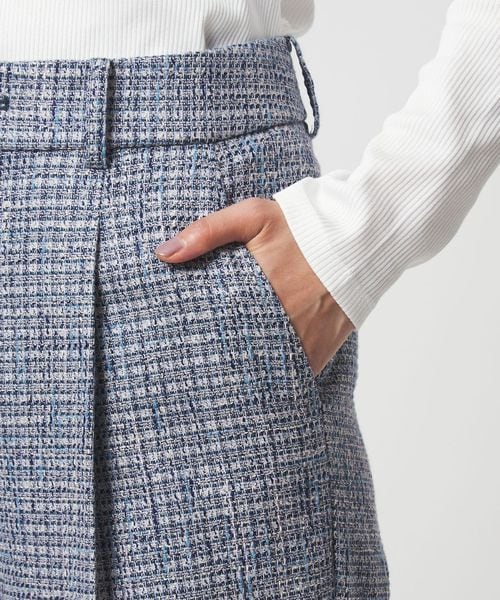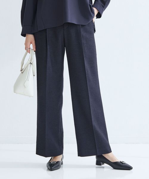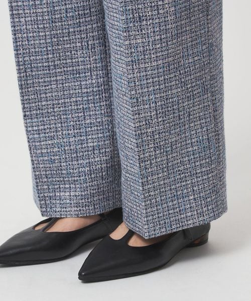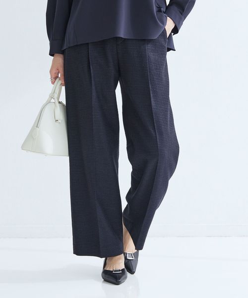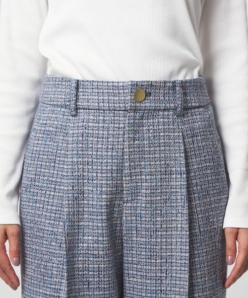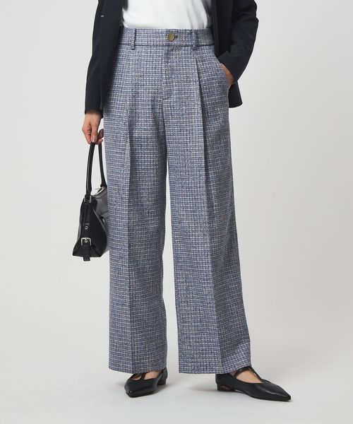 コーディネートにほどよいアクセントを加えてくれるツイードライクな素材のワイドパンツ。