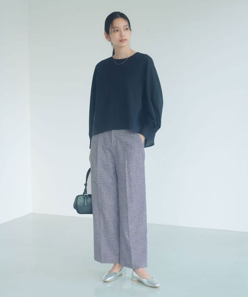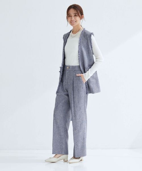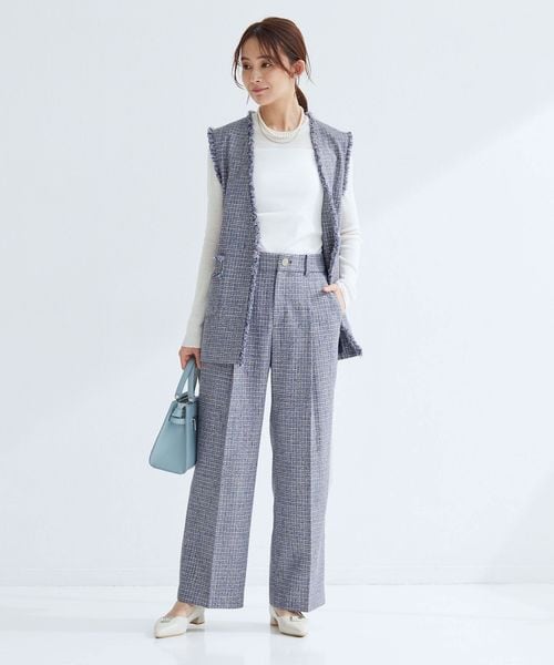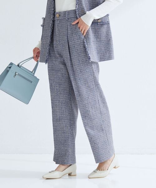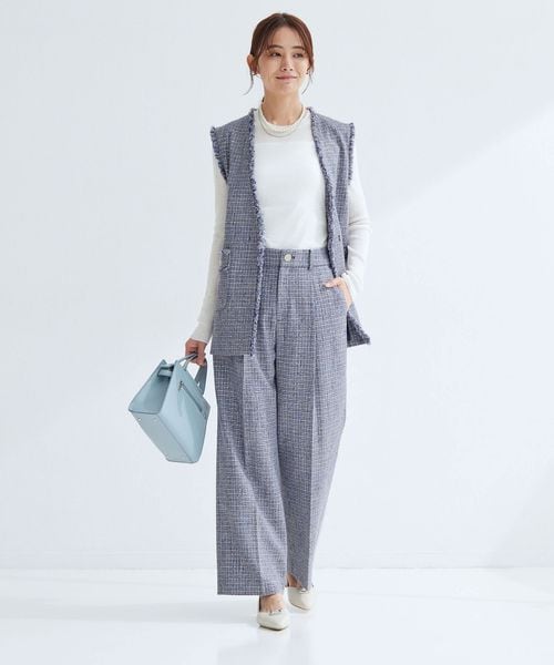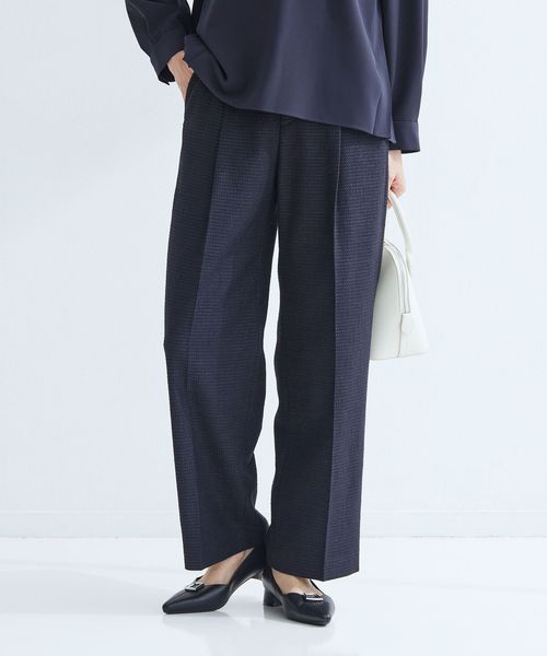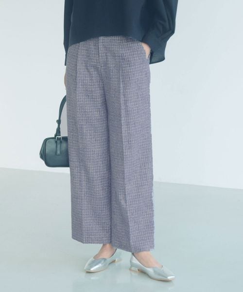 コーディネートにほどよいアクセントを加えてくれるツイードライクな素材のワイドパンツ。