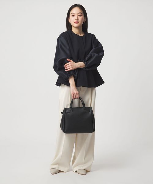本体内側に使い勝手のよい仕切りポケットをあしらったバッグ。