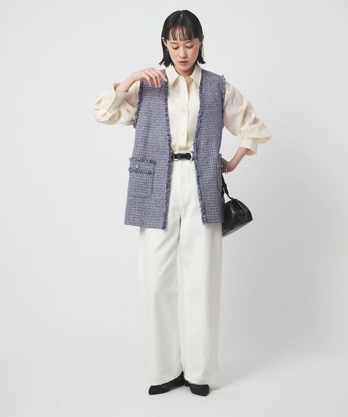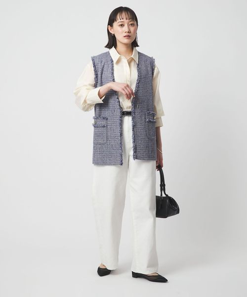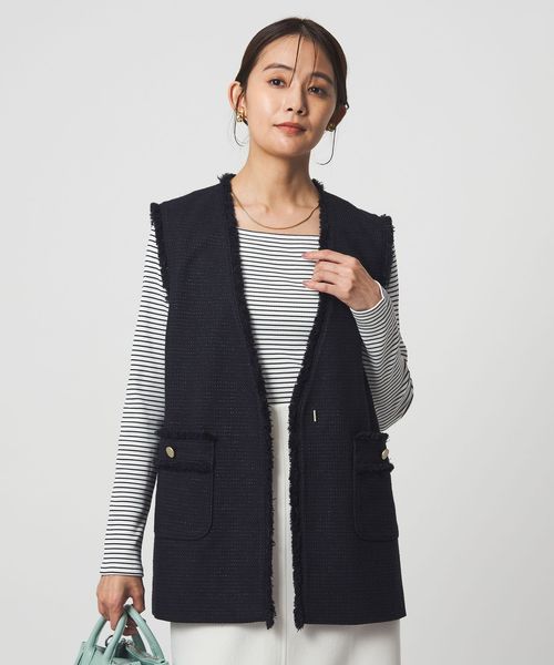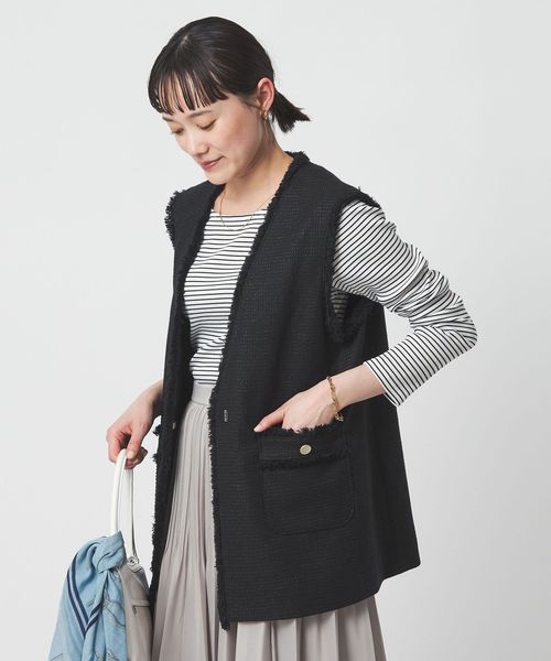 コーディネートにほどよいアクセントを加えてくれるツイードライクな素材のジレ。