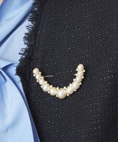 フェイクパール ラインパヴェ ブローチ