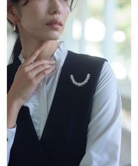 フェイクパール ラインパヴェ ブローチ