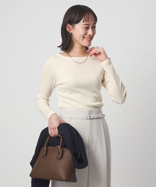 デコルテラインをキレイに見せてくれるボートネックデザインのカットソー。