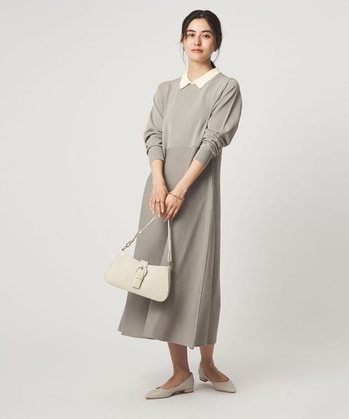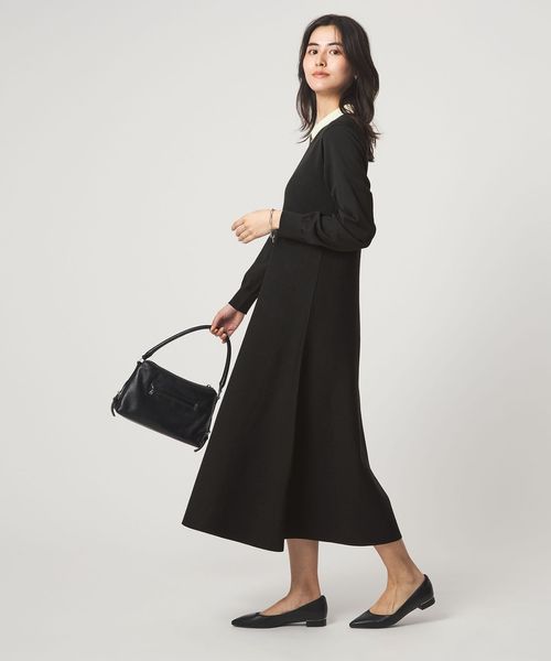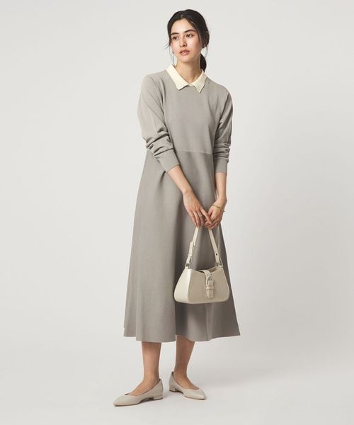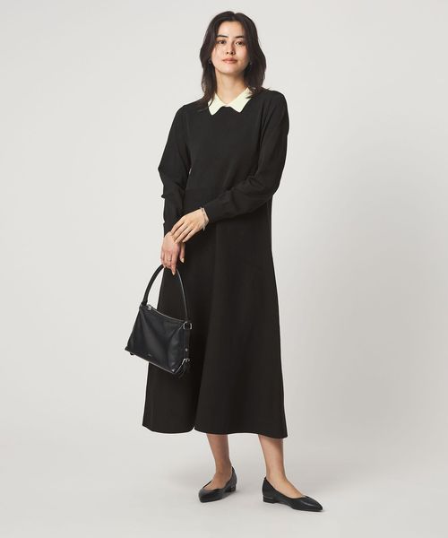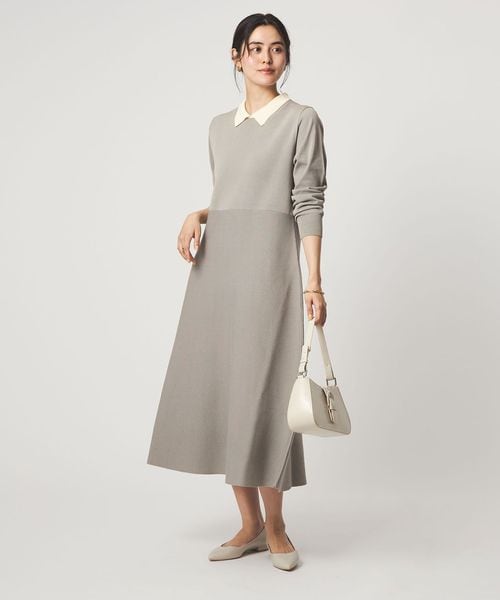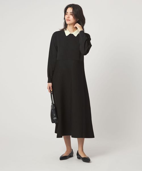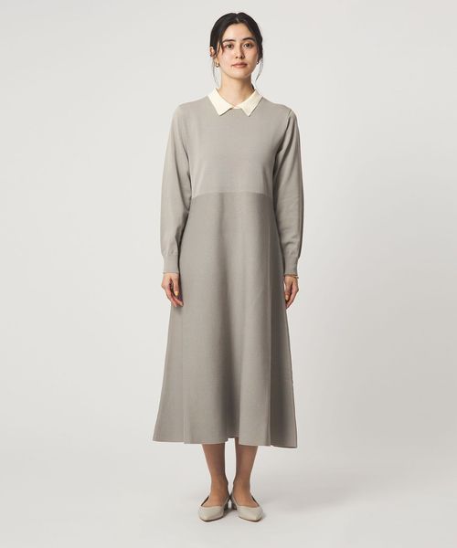 お仕事からデイリーまで幅広いシーンで着用いただける襟付きニットワンピース。