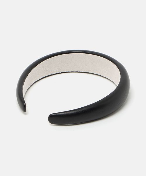 ヘアアレンジが簡単にきまる、レザーライクな素材を使用したパデットカチューシャ。