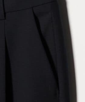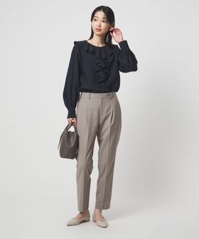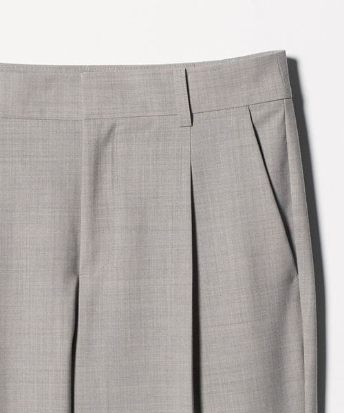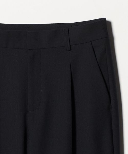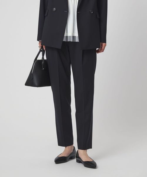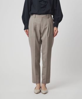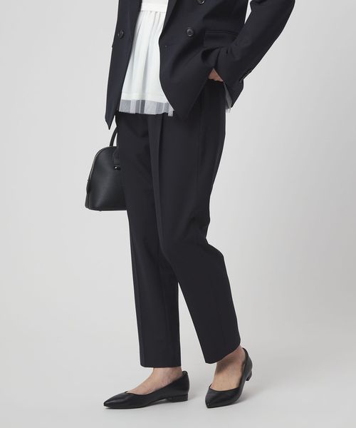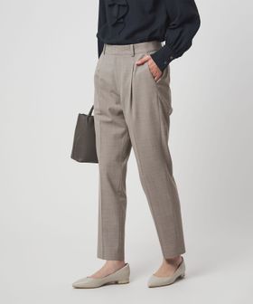 ぴったりしすぎず、ゆるすぎないシルエットのタックテーパードパンツ。