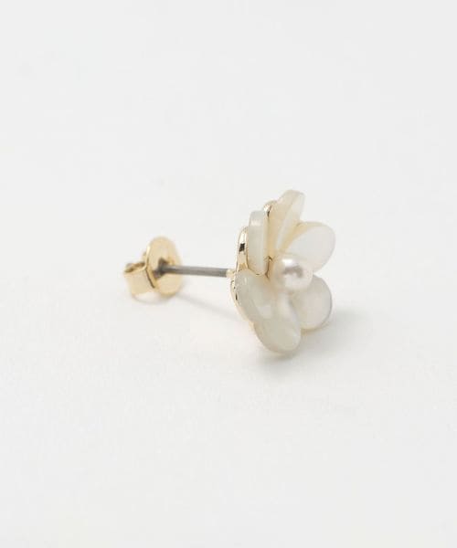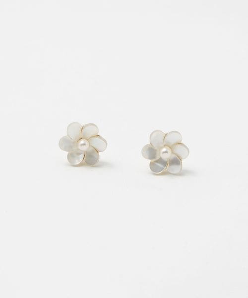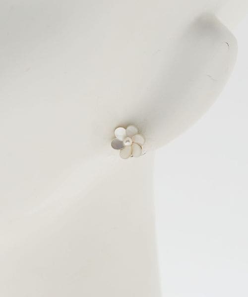 繊細なシェルパーツの花びらで顔回りをさりげなく華やかにしてくれるピアス。