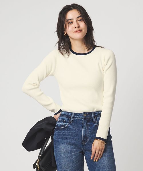 <1_OF MINE>リブ クルーネック プルオーバー ニット ウォッシャブル