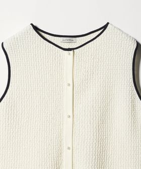 スタイリングのアクセントになるパイピングデザインのニットジレ