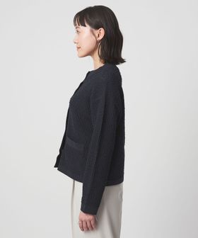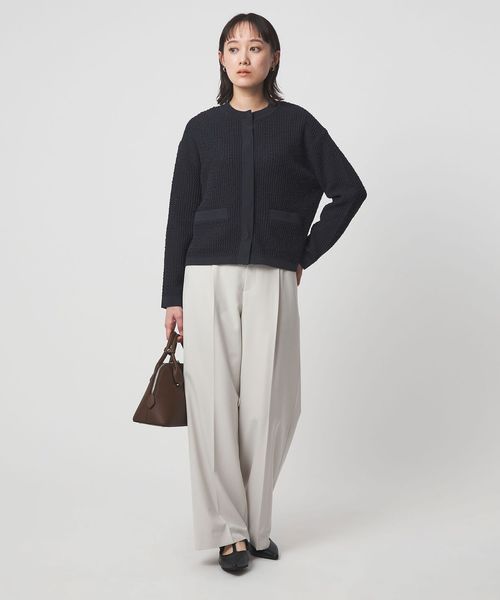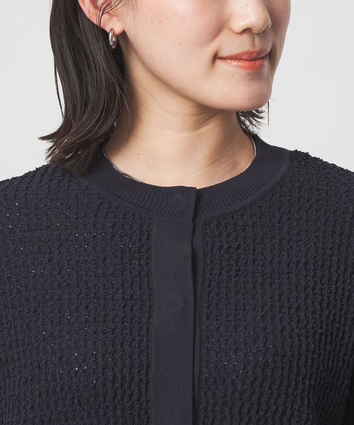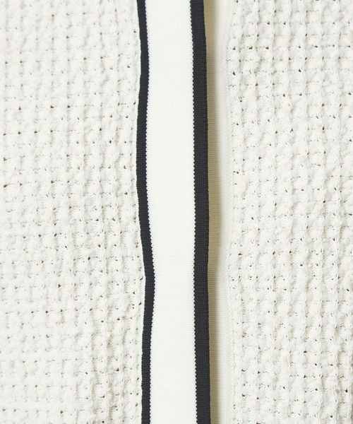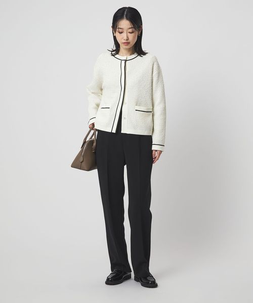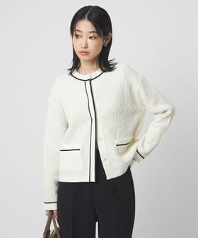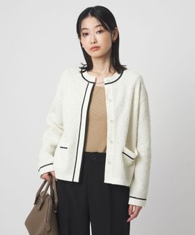 スタイリングのアクセントになるパイピングデザインのニットカーディガン