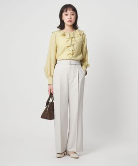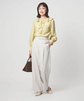 ワイドパンツをを合わせて大人フェミニンにも、デニムを合わせればカジュアルにも雰囲気が変わります。